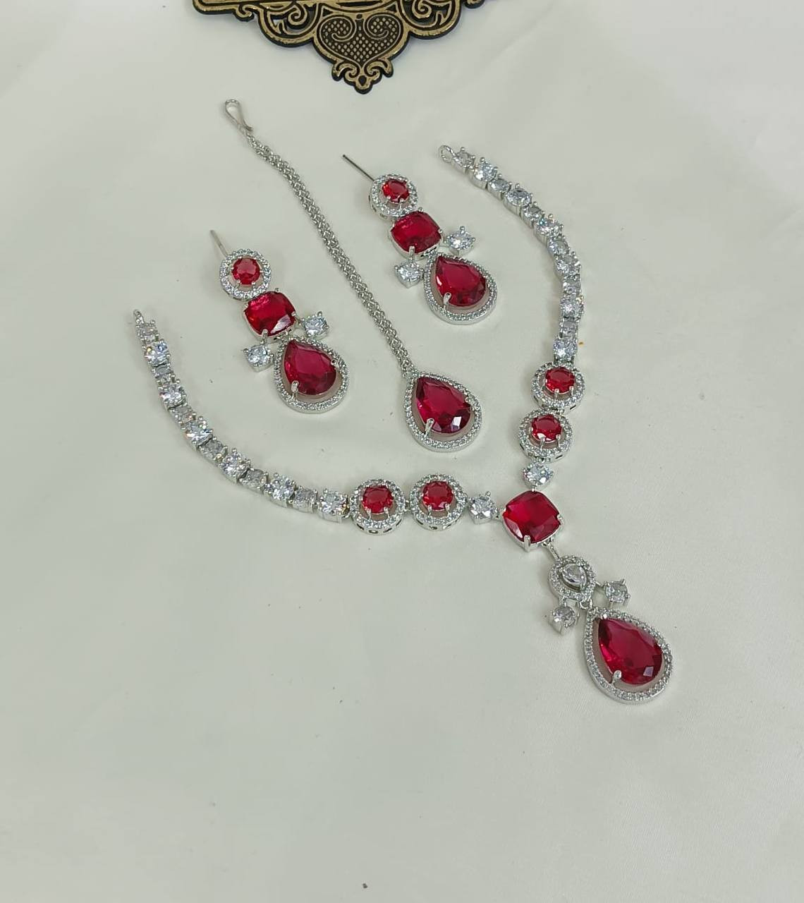 সেটে থাকছে: একটি আকর্ষণীয় নেকলেস, এক জোড়া ম্যাচিং কানের দুল এবং একটি প্রিমিয়াম টিকলি।