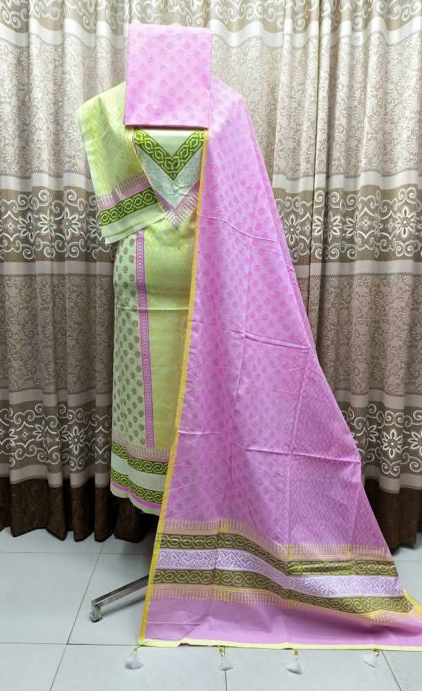 ​? প্রিমিয়াম ব্লক প্রিন্ট আনস্টিচ থ্রি-পিস – নতুন কালেকশন! ?✨