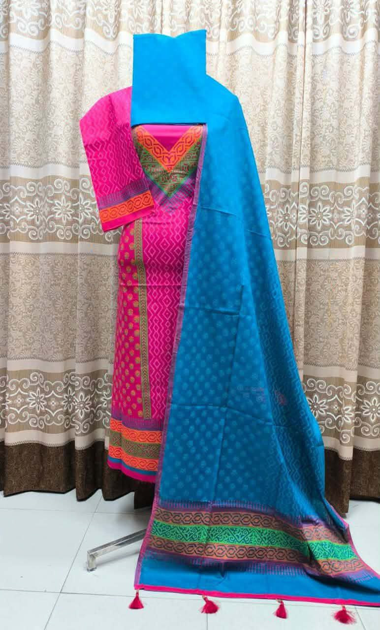 ​? ব্লক প্রিন্ট আনস্টিচ থ্রি-পিস (Premium Collection) ?