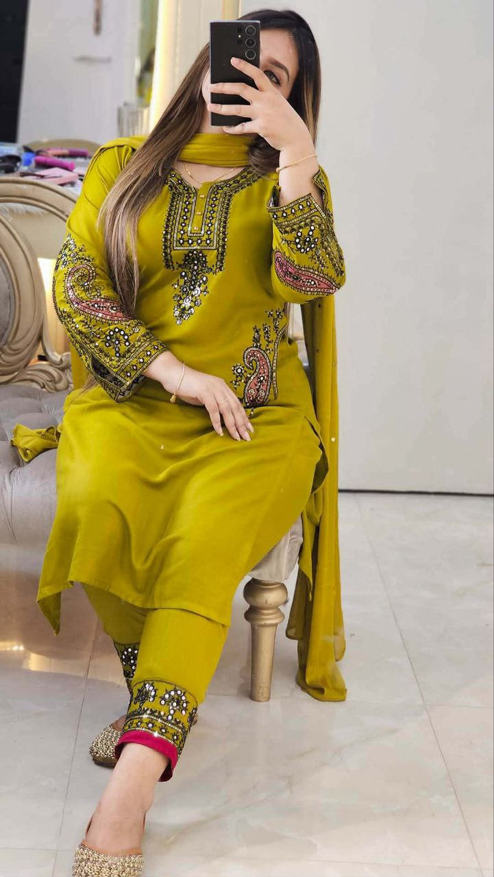 ​✅ ওড়না: ১০০% প্রিমিয়াম রেয়ন সিল্ক কাপড়। ওড়না জুড়ে রয়েছে আকর্ষণীয় ডলার বসানো ডিজাইন। (৫ হাত বিশাল ওড়না)।