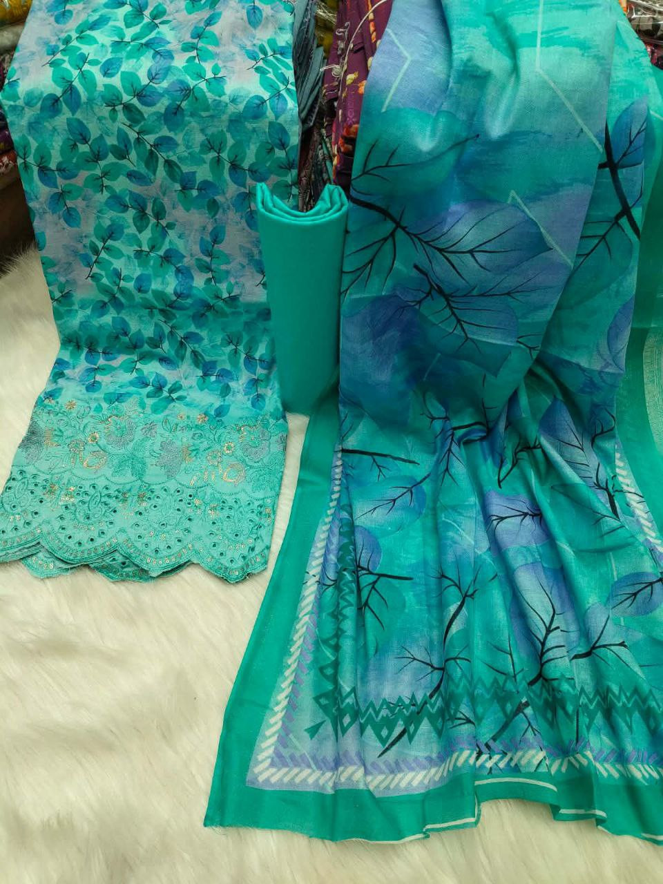 মাসাল কটন থ্রি-পিস – প্রিমিয়াম ঈদ কালেকশন!। Cotton Three Piece, Embroidery Suit, Floral Digital Print,