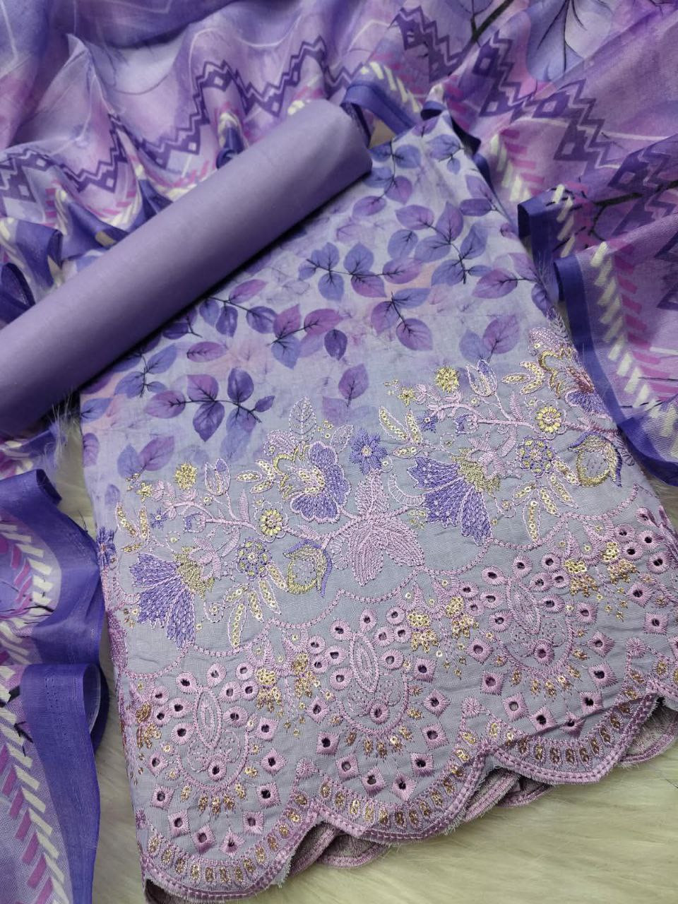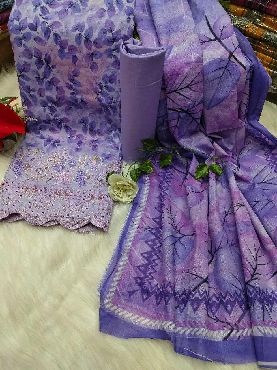। Cotton Three Piece, Embroidery Suit, Floral Digital Print, মাসাল কটন থ্রি-পিস – প্রিমিয়াম ঈদ কালেকশন