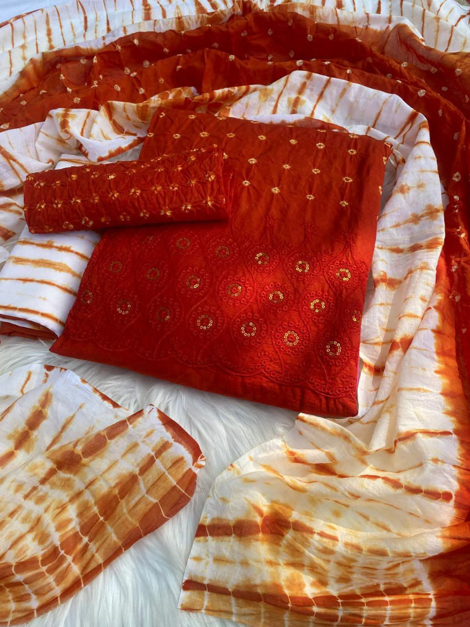 ✅ টাই-ডাই ডিজাইন: কামিজ এবং ওড়নায় রয়েছে চমৎকার টাই-ডাই কারুকাজ।