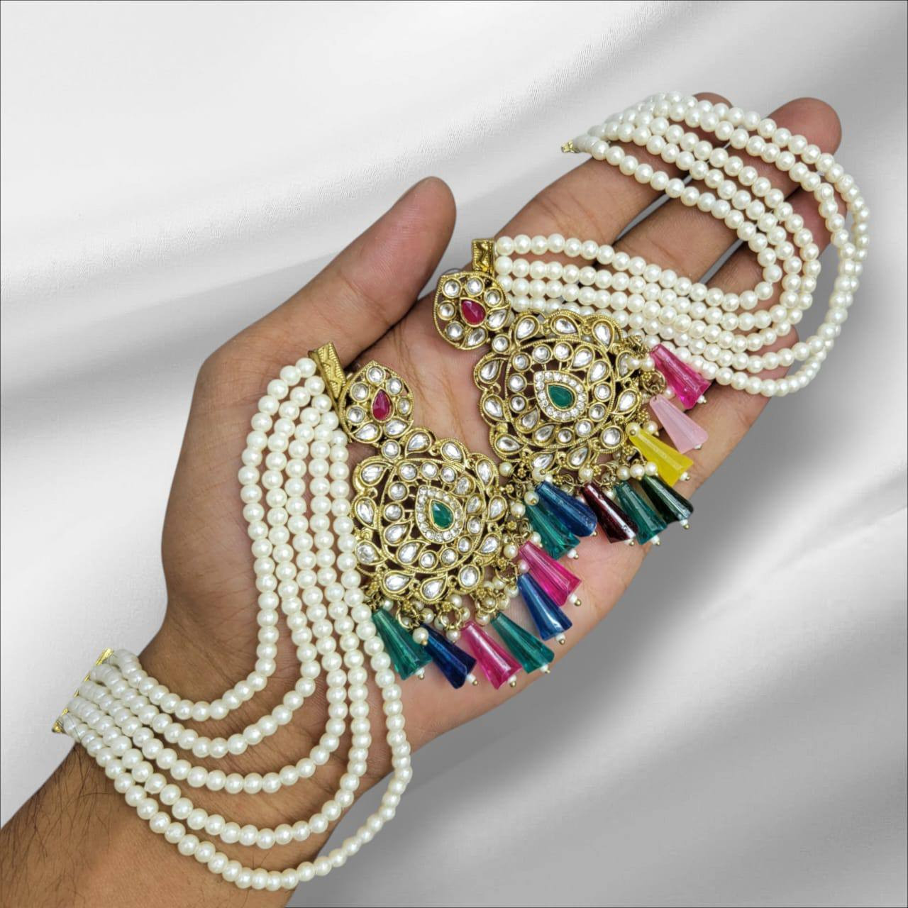 প্রিমিয়াম মাল্টি-কালার কুন্দন ও মুক্তার ঝুমকা (সাহারালতা সহ)