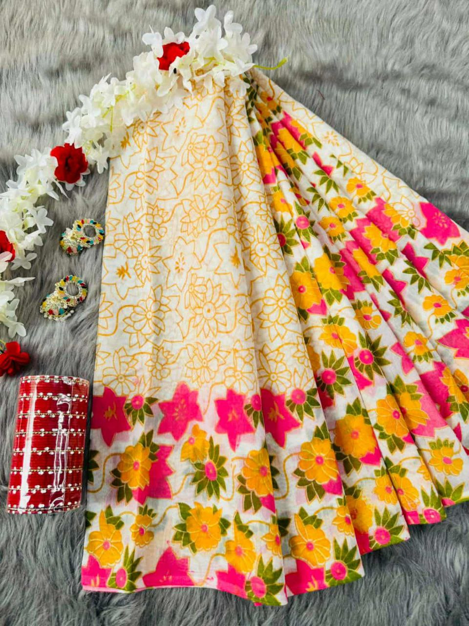 ✅ শাড়ি: প্রিমিয়াম কোয়ালিটি স্কিন প্রিন্ট শাড়ি (অত্যন্ত আরামদায়ক এবং ক্যাজুয়াল ব্যবহারের জন্য পারফেক্ট)।