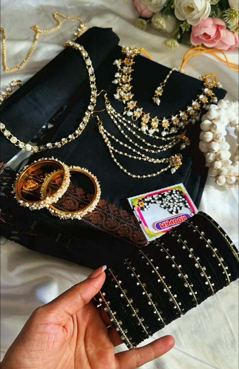 প্রিমিয়াম শাড়ি ও কুন্দন জুয়েলারি মেগা কম্বো (কোমর বিছা ও গিফট বক্স সহ)
