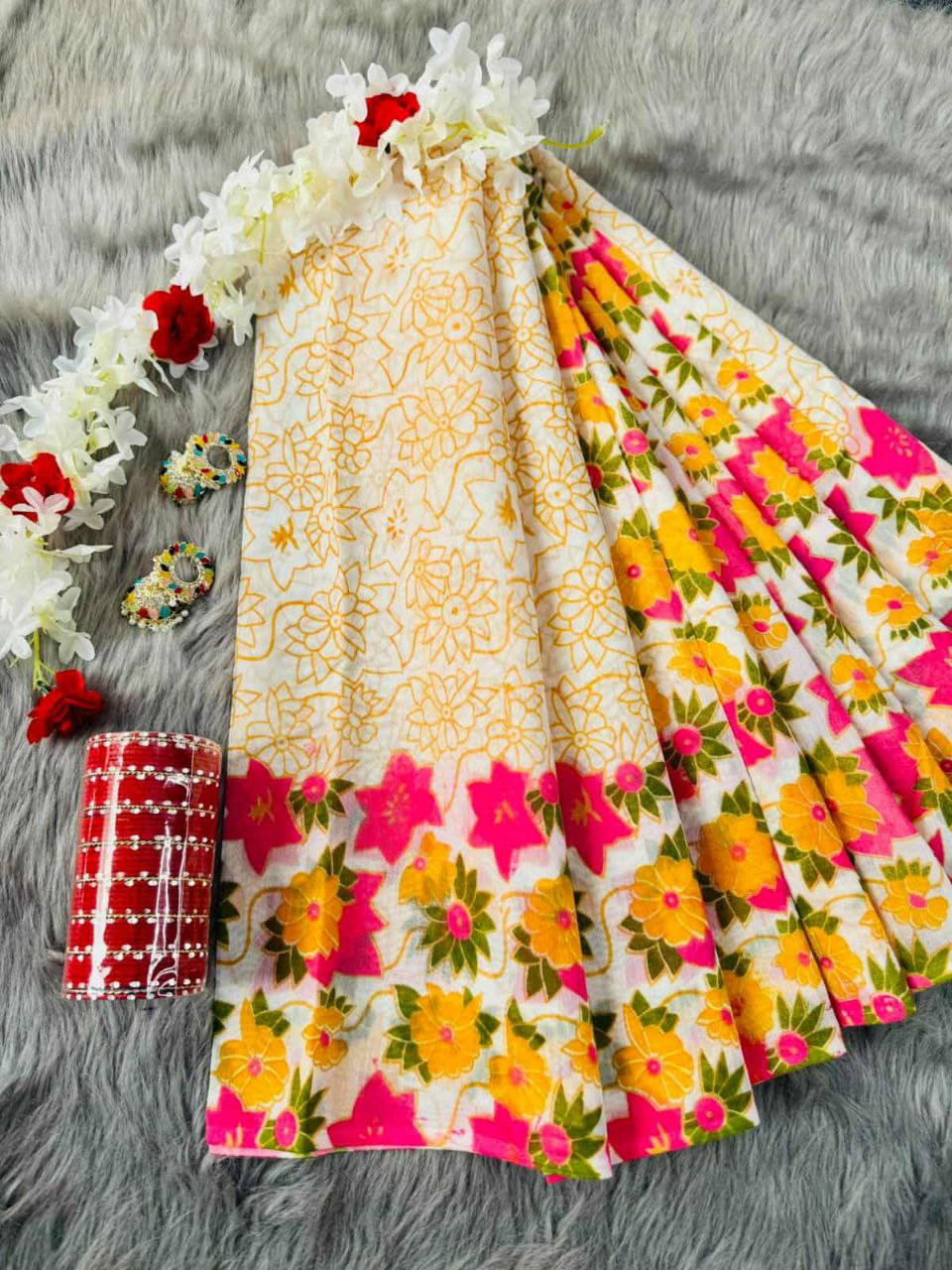 ✅ শাড়ি: প্রিমিয়াম কোয়ালিটি স্কিন প্রিন্ট শাড়ি (অত্যন্ত আরামদায়ক এবং ক্যাজুয়াল ব্যবহারের জন্য পারফেক্ট)।