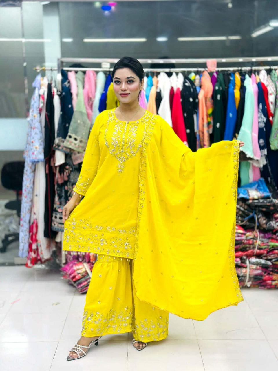 বর্তমান সময়ের সবথেকে ট্রেন্ডি এবং ডিমান্ডিং গারারা সেট এখন আমাদের স্টকে! গর্জিয়াস লুক আর প্রিমিয়াম কোয়ালিটির এই ড্রেসটি যেকোনো পার্টি বা অনুষ্ঠানের জন্য আপনার প্রথম পছন্দ হতে পারে। ✨